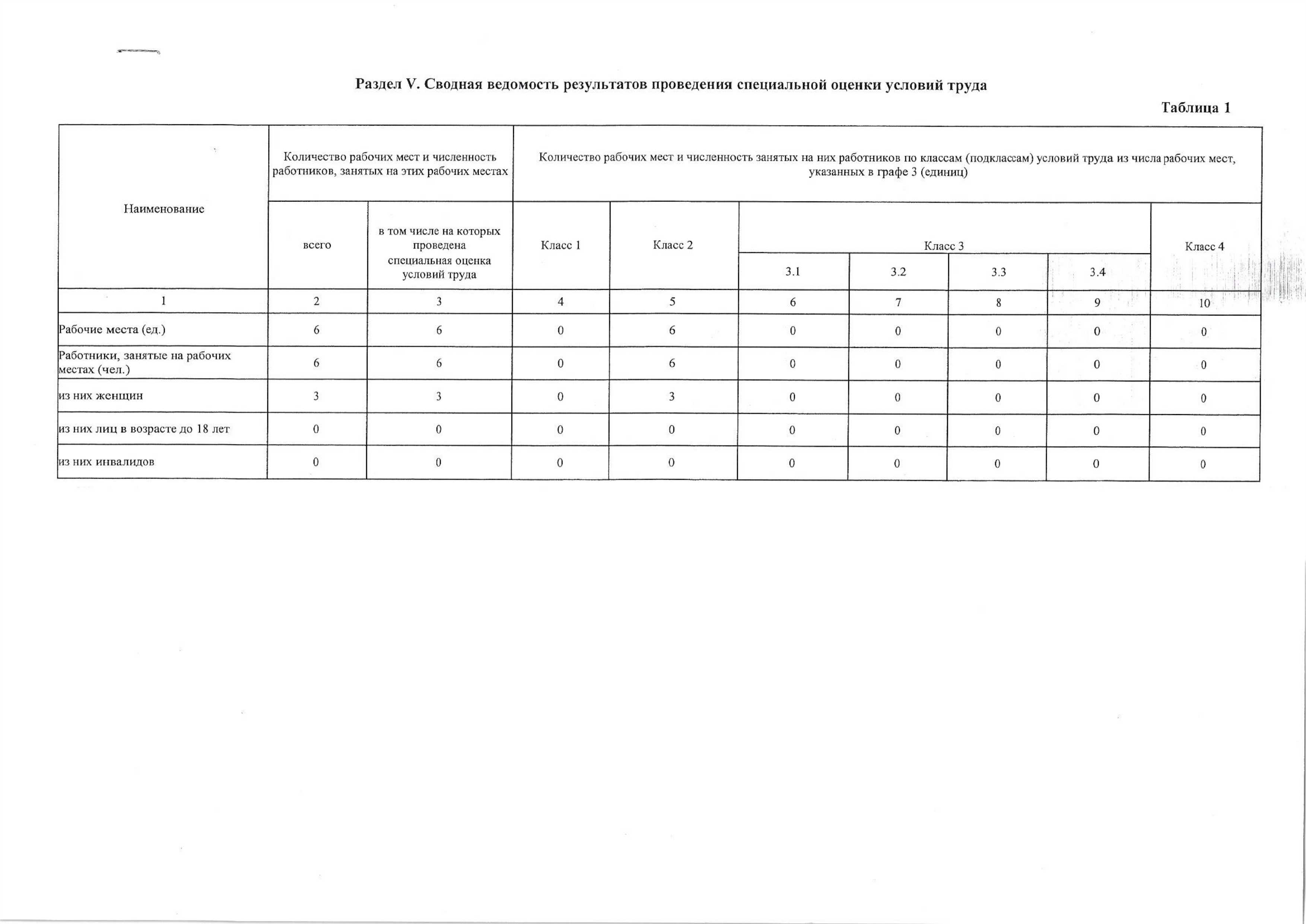 Сводная ведомость результатов проведения специальной оценки условий труда (дата размещения на сайте - 15.08.2019 г.)